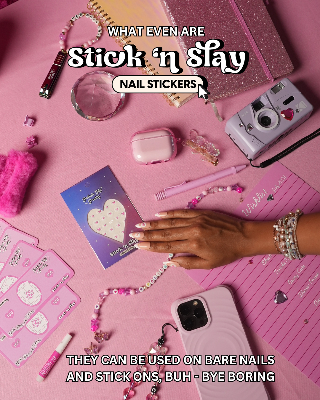 Your nails, but make them extra. Stick N Slay nail stickers are the easiest way to upgrade your manicure in seconds. Just peel, stick, press and suddenly your nails are serving looks.